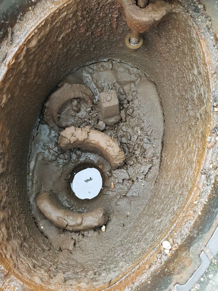 Völlig versandete oder verschlammte Unterflurhydranten.