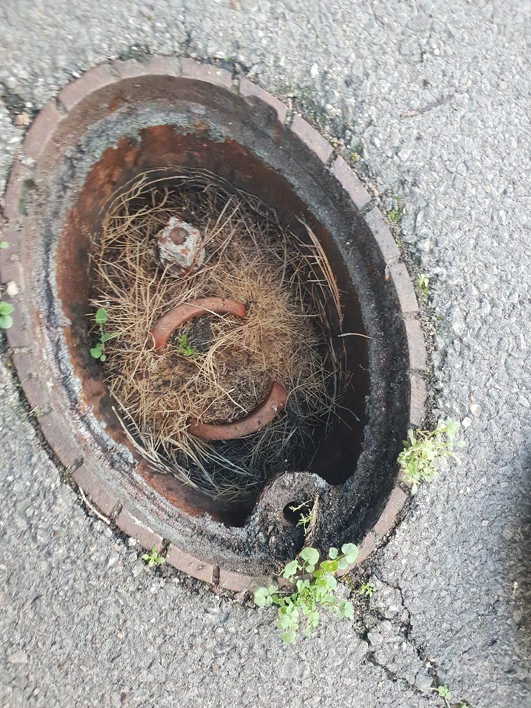 Gebrochene Brücken am Schachtdeckel. Mit einer regelmäßigen Instandhaltung durch einen Wartungsplan werden solche Missstände schnell entdeckt und können behoben werden.